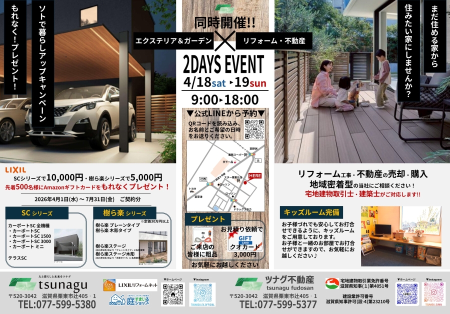 さてこの度、外構部門・不動産部門の同時イベント、「お家の相談会」を開催します。不動産の売却・購入からリフォーム、エクステリアに関すること何でもOK。どうぞお気軽にお越しください。