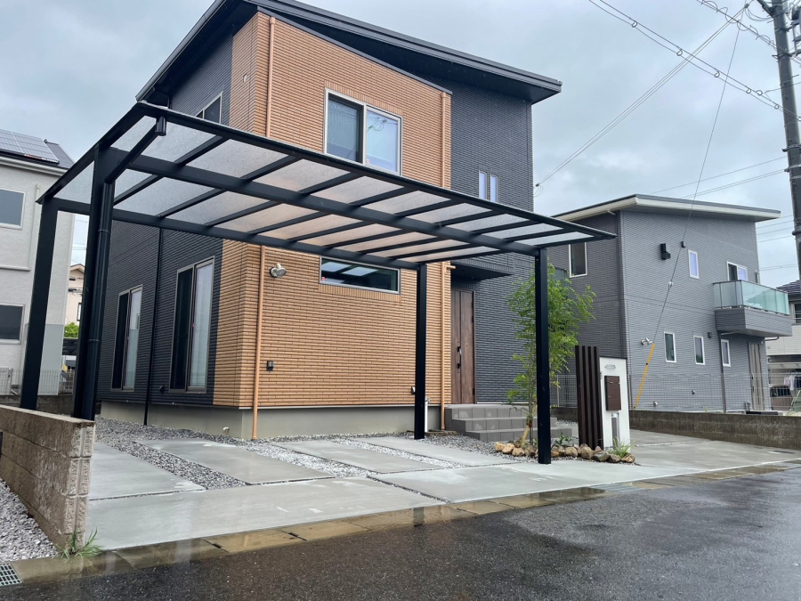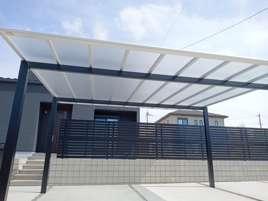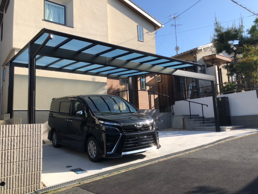 掃き出し窓の近くでも圧迫感がなくお部屋が暗くならないとても人気のカーポートです。